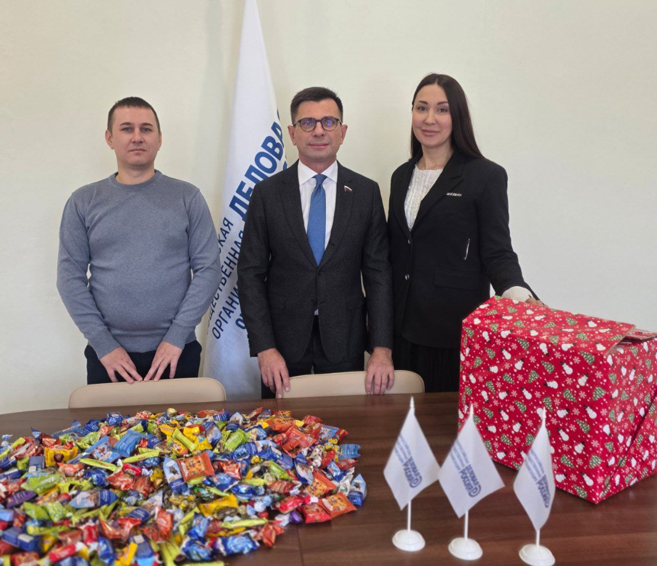 В преддверии Нового года председатель реготделения Игорь Антропенко и член Омской "Деловой России" Антон Берендеев передали конфеты и кондитерские изделия для подарочных наборов, которые попадут в руки детей с инвалидностью, юных омичей, нуждающихся в особом уходе и поддержке. Детишки - подшефные Омского отделения "Российского Красного креста".